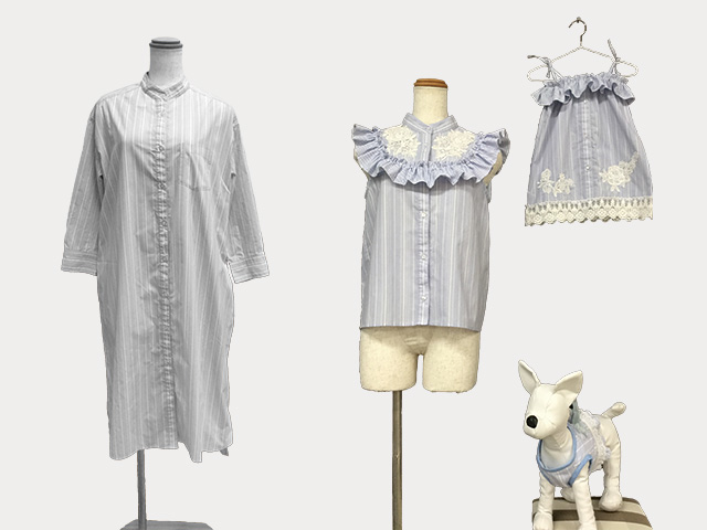 - 1枚のシャツワンピースから大人用ブラウス、子供用ワンピース、犬の胴輪にリメイクしました。世界にひとつだけのお揃いファッションです!!
