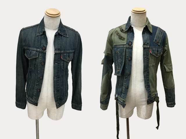 - デニムジャケットとミリタリー風パンツを合わせた異素材ミックスジャケットです。どこにも売っていないこだわりの1点もの♪自分だけのお洒落を楽しんでいただけますようにと思いを込めました。