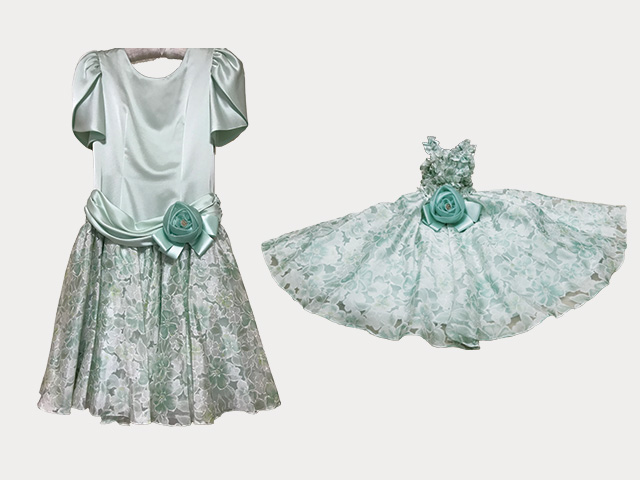 - お客さまのワンピースから犬のドレスを作りました。七五三のように写真館で記念写真を撮られるそうです。