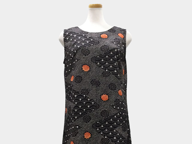 - 柄の素敵な反物を見つけたのでワンピースに仕立てました。涼しくなったら上に重ねる物で色々楽しめると思います。