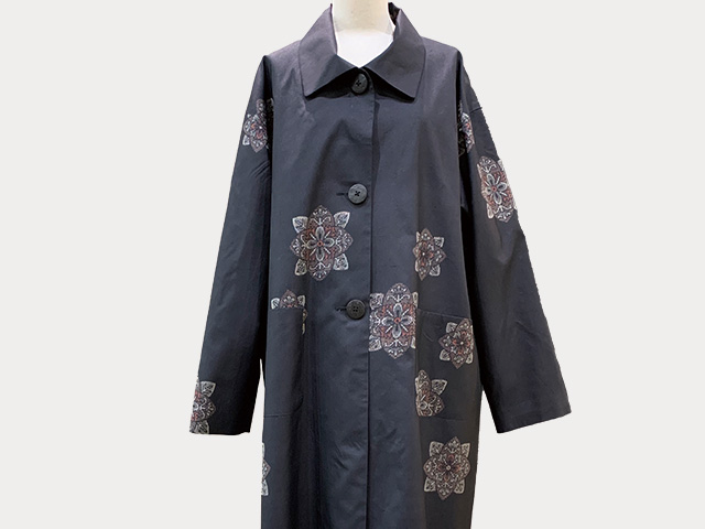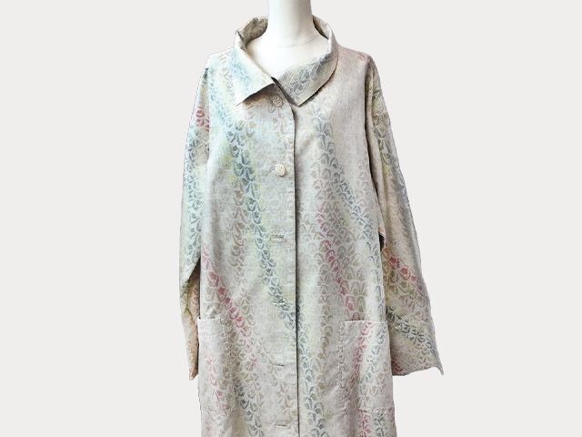 - ご自宅に眠っていた着物を普段使いのストレートジャケットにリメイク。首元にスカーフを結ぶと季節に合わせたコーディネートも楽しめます。