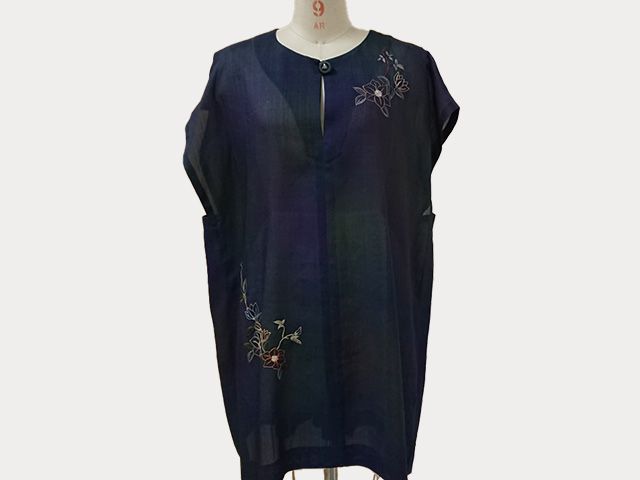 - お客さまの刺繍を使用して洋服を仕立てました。お客さまと共に作りあげた世界にひとつのお洋服になります。